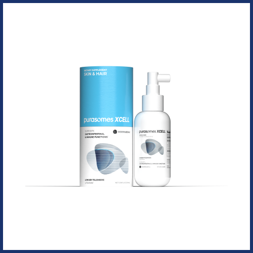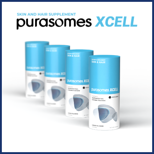 Purasomes XCELL se ha desarrollado como un suplemento nutracéutico con ingredientes con respaldo científico que respalda la regeneración de piel y pelo.