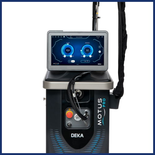Hoy, la familia Motus de DEKA se expande con la llegada de Motus PRO: una plataforma de dos longitudes de onda complementarias (755 nm Alejandrita + 1064 nm Nd:YAG), renovada en estilo y rendimiento, con: