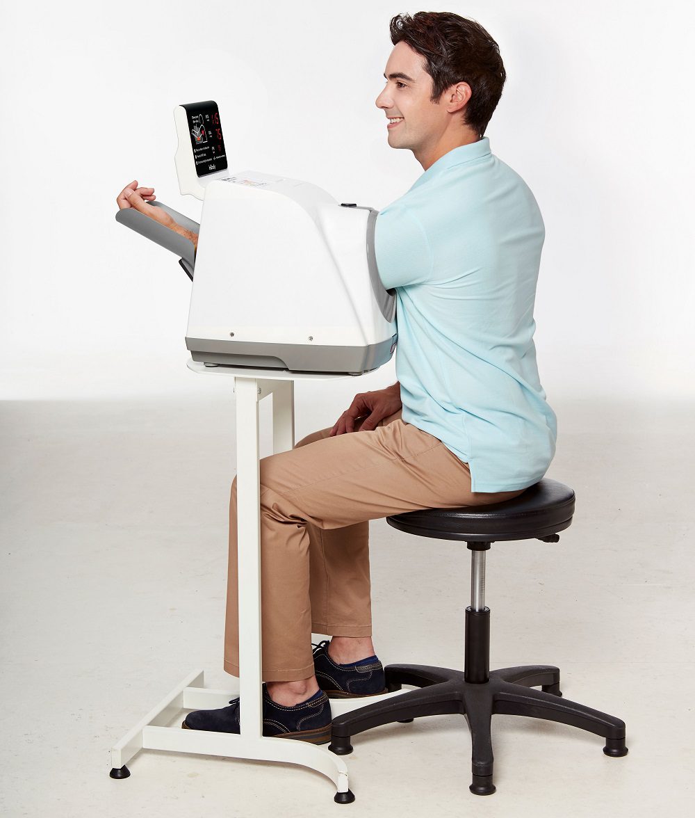 El BPBIO 320 clínicamente validado presenta una ranura para el codo ergonómica y un taburete ajustable que coloca a los usuarios en la posición ideal para obtener resultados precisos en todo momento.